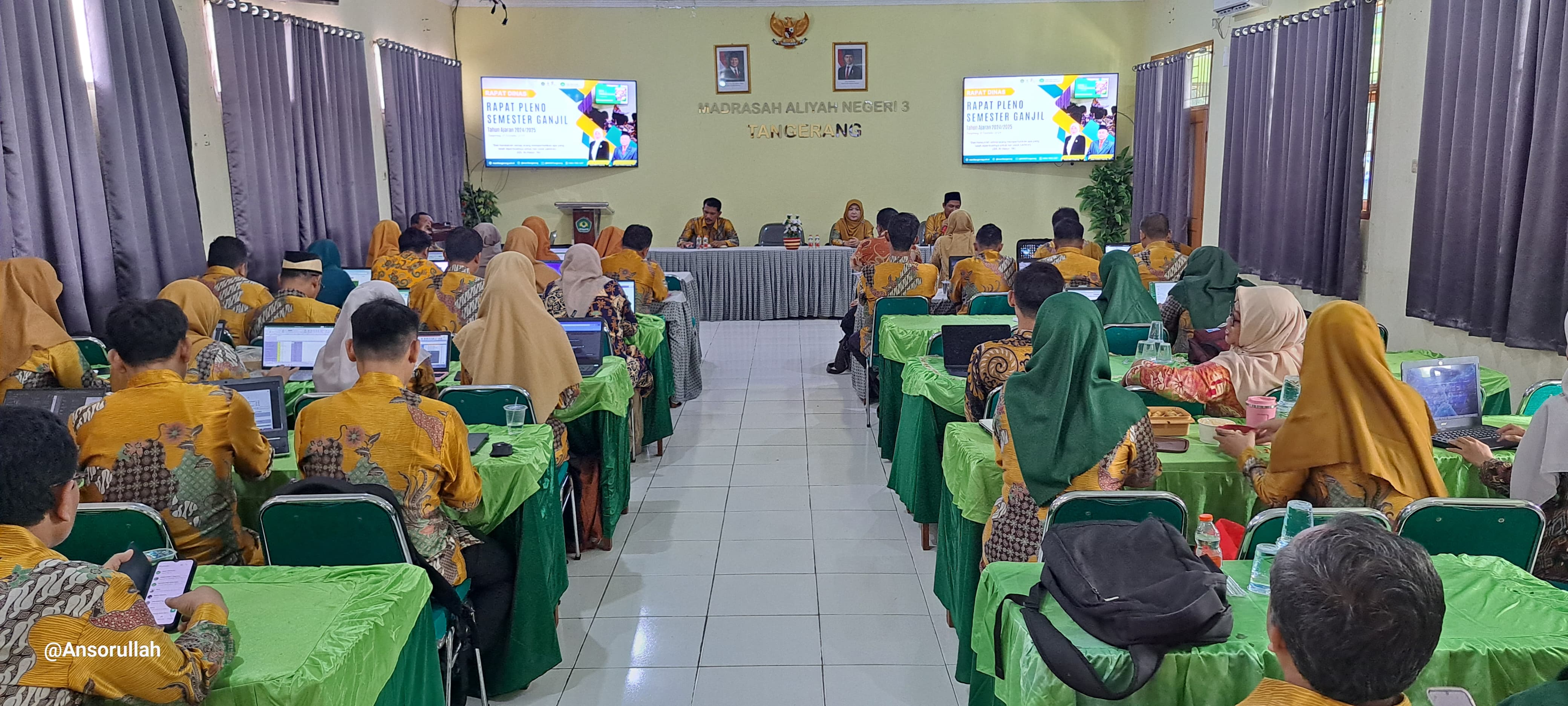 Tangerang, 12 Desember 2024 – MAN 3 Tangerang mengadakan Rapat Pleno Semester Ganjil Tahun Ajaran 2024/2025 pada tanggal 11 Desember 2024, bertempat di aula sekolah. Rapat dimulai tepat pukul 09.00 WIB dan dihadiri oleh seluruh guru dan staf pengajar.Acara dibuka oleh MC, Bapak Muhdi, S.Pd.I, yang kemudian dilanjutkan dengan laporan dan evaluasi kegiatan kesiswaan oleh Bapak Abdul Hakim, S.Ag. Dalam laporannya, beliau menyampaikan bahwa jumlah siswa MAN 3 Tangerang terus bertambah, dan berharap peningkatan ini tidak hanya dalam kuantitas tetapi juga kualitas. Program kesiswaan, termasuk penyambutan siswa baru dan kegiatan keagamaan, berjalan dengan lancar. Namun, beliau juga mencatat bahwa masih banyak siswa yang izin dan alfa dalam kegiatan ekstrakurikuler.Kepala MAN 3 Tangerang, Ibu Dra. Hj. Siti Maemunah, dalam sambutannya menekankan pentingnya rapat pleno sebagai agenda tahunan sebelum pembagian rapot. Beliau mengajak semua pihak untuk bersatu dalam visi dan misi pendidikan, serta meningkatkan prestasi siswa baik akademik maupun non-akademik. Ibu Siti juga mengingatkan bahwa kegiatan Hari Amal Bhakti (HAB) Kementerian Agama akan dilaksanakan pada 3 Januari, dan perlu persiapan untuk lomba-lomba yang akan diadakan.Selanjutnya, Bapak Kokon Abdul Kodir, S.Pd, selaku Wakil Kepala Bidang Akademik, menyampaikan evaluasi Kegiatan Belajar Mengajar (KBM) di semester ganjil. Beliau menekankan pentingnya guru sebagai sosok yang dirindukan oleh siswa dan perlunya strategi pembelajaran yang sesuai dengan perkembangan zaman.Rapat juga diwarnai sesi tanya jawab, di mana beberapa pertanyaan diajukan oleh para guru. Tanggapan dari Kepala Madrasah mengenai proses penilaian dan batasan nilai maksimal menjadi perhatian khusus, di mana beliau menegaskan bahwa penilaian harus disesuaikan dengan kemampuan masing-masing siswa.Acara ditutup dengan doa oleh Bapak Sukron Makmun, S.Pd.I, dan rapat berakhir tepat pukul 12.15 WIB.Dengan diadakannya rapat pleno ini, diharapkan semua pihak dapat berkolaborasi lebih baik dalam meningkatkan kualitas pendidikan di MAN 3 Tangerang.Upacara Senin Rutin di MAN 3 Tangerang: Persiapan Diri Menuju Daya Saing Global